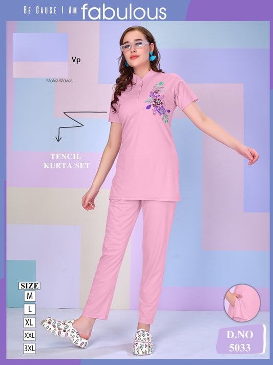 Design 5033 Vp Tencil Kurta Night Suits Wholesaler