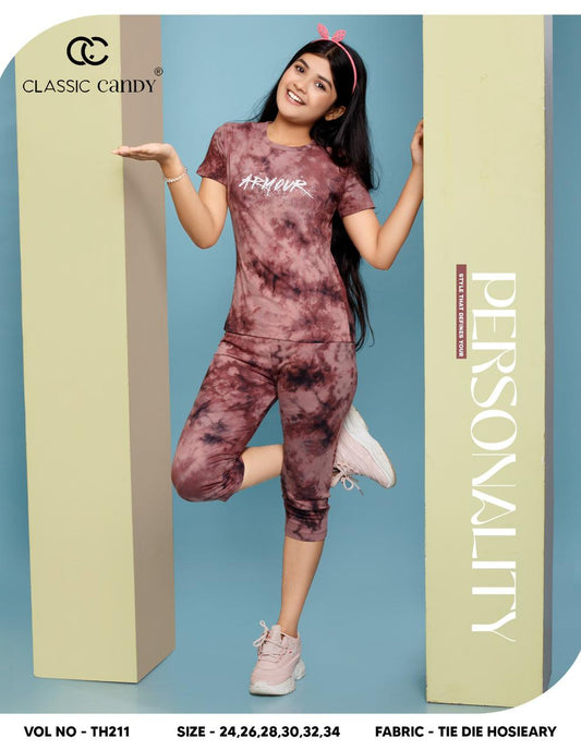 Th217 Classic Candy Biowash Girls Capri Night Suits Wholesale Rate