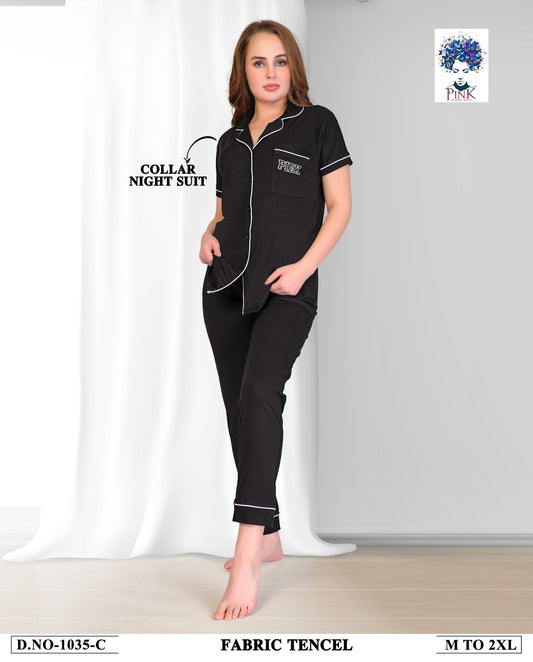 Design 1035 Pink Tencil Collar Night Suits Supplier