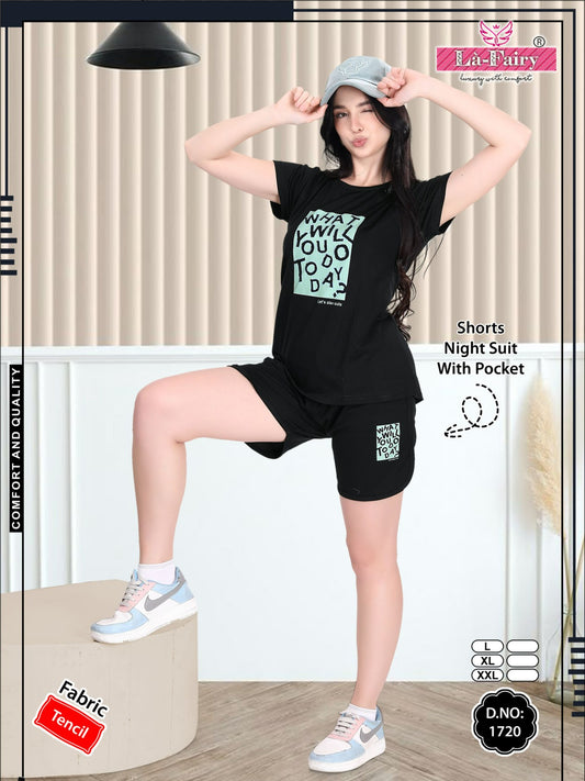 Pocket 1720 La Fairy Tencil Shorts Night Suits Wholesaler Ahmedabad
