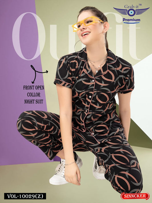 Front Open Vol 10029 Aa Grab It Sinker Collar Night Suits Wholesaler Ahmedabad