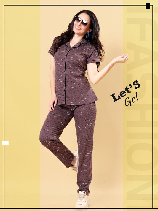 Shinker Printed Perfect Feel Collar Night Suits Supplier India