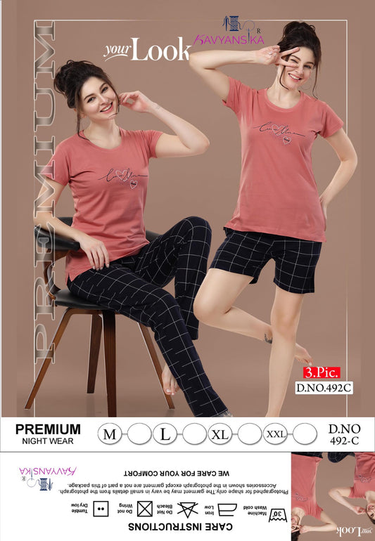 Vol 492 Kavyansika Shorts Pyjama Night Suits