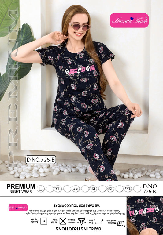 Design 726 Kavyansika Hosiery Cotton Pyjama Night Suits Supplier