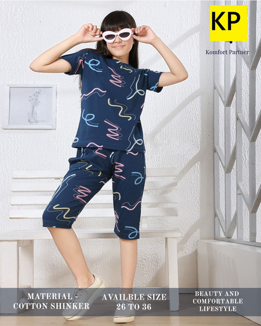 Print 270326 Kp Sinker Girls Capri Night Suits Manufacturer India