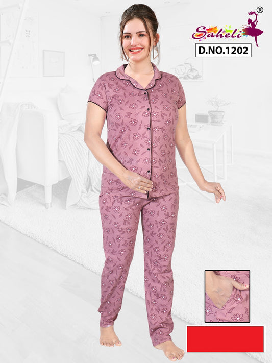 Selvi 1202 Saheli Cotton Collar Night Suits Wholesale Price