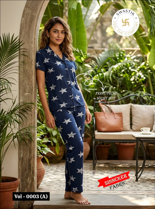 Vol 0001 Swastik Sinker Collar Night Suits Wholesale Rate