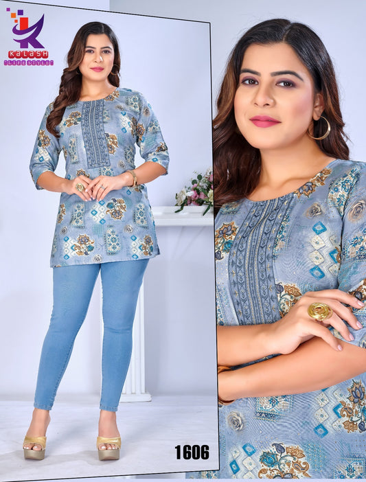 Pretty Little 9 Mlm Kalash Lifestyle Rayon 14Kg Short Kurtis Wholesale Price