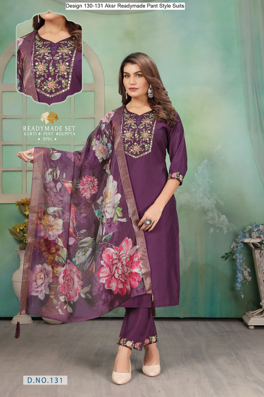 डिज़ाइन 130-131 अक्सर रोमन सिल्क रेडीमेड पैंट स्टाइल सूट निर्माता गुजरात
