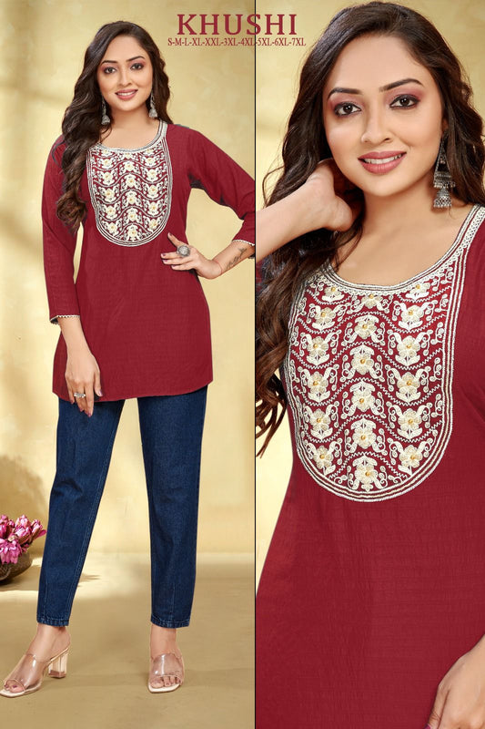 ख़ुशी संगीत विस्कोस रेयॉन शॉर्ट कुर्तियां