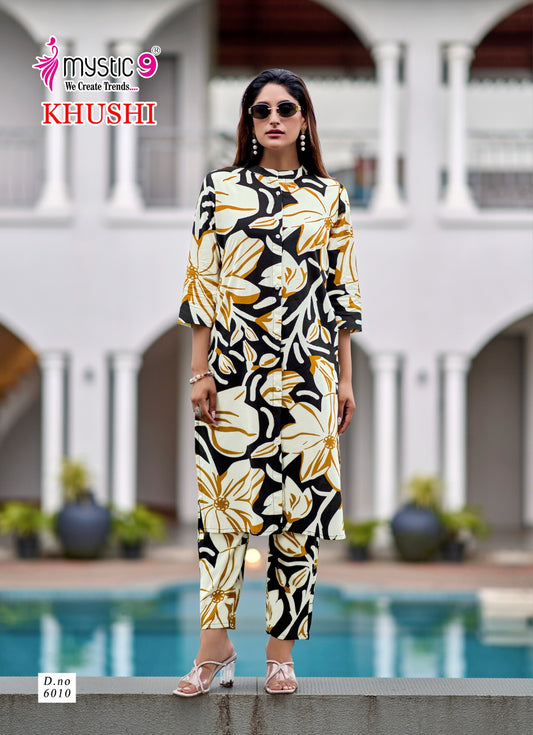 ख़ुशी वॉल्यूम 7 मिस्टिक 9 विस्कोस को-ऑर्ड सेट थोक विक्रेता भारत