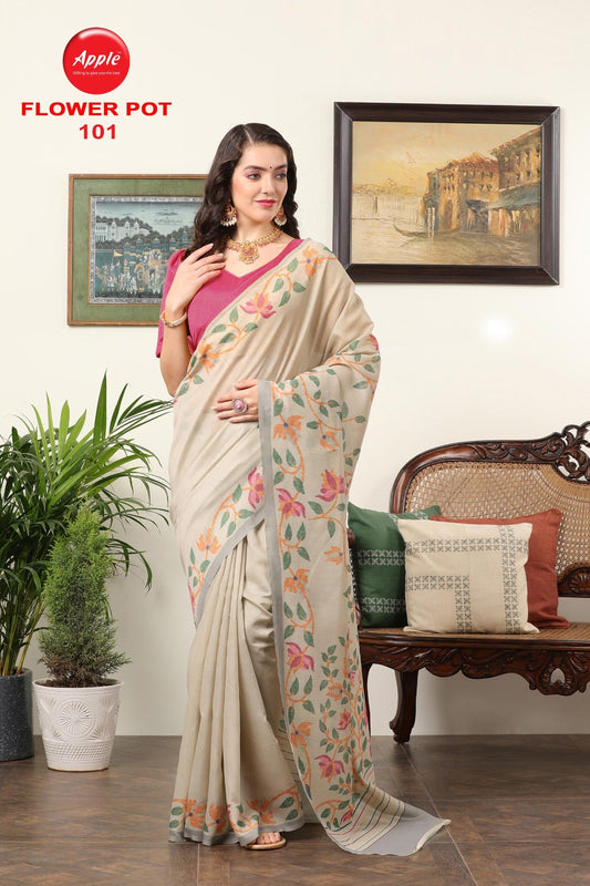 फ्लावर पॉट एप्पल चंदेरी साड़ियाँ