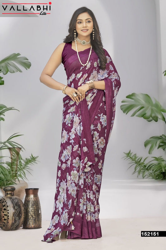 सिएना वल्लभी प्रिंट्स शिफॉन साड़ी निर्यातक