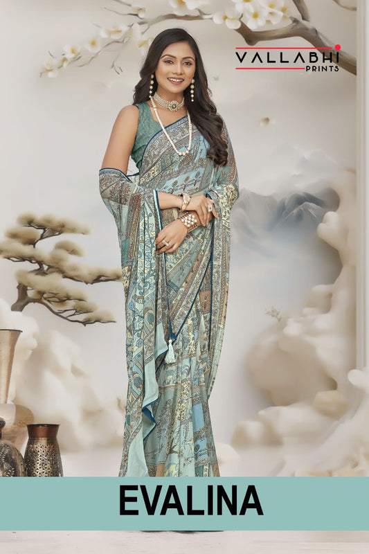 इवलिना वल्लभी प्रिंट्स जॉर्जेट साड़ियाँ थोक दर