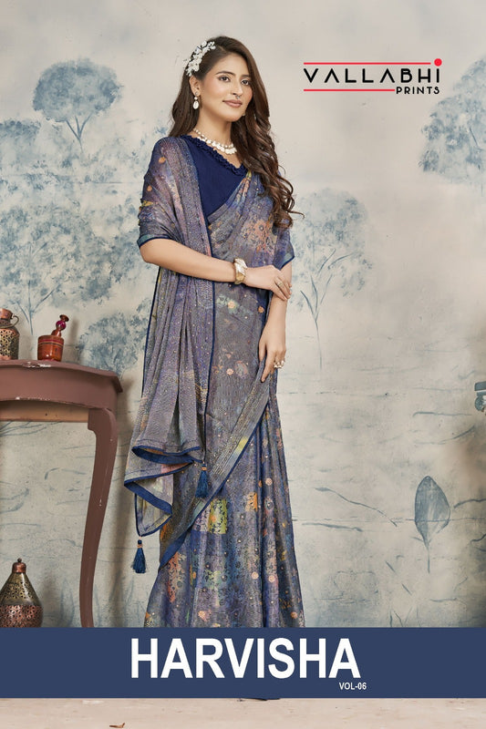 हरविशा वॉल्यूम 6 वल्लभी प्रिंट्स शिफॉन साड़ी निर्यातक