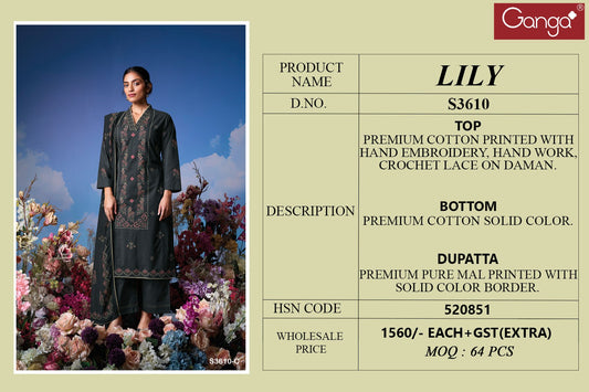 लिली 3610 गंगा कॉटन प्लाज़ो स्टाइल सूट निर्माता गुजरात
