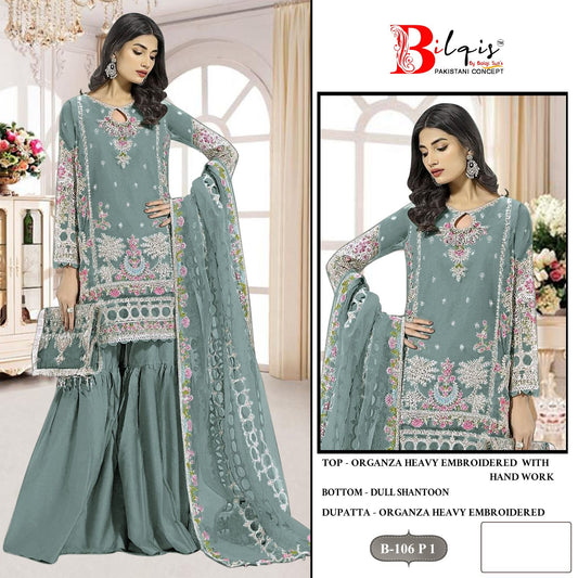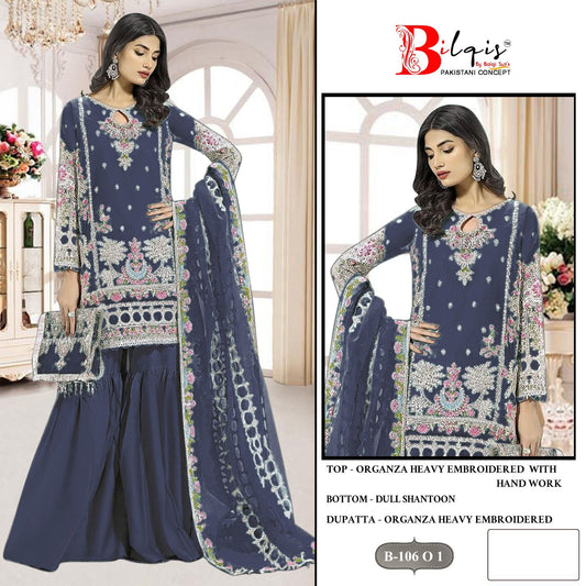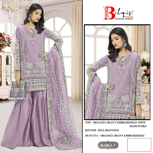 B 106Mnop Bilqis Organza Pakistani Salwar Suit Wholesaler
