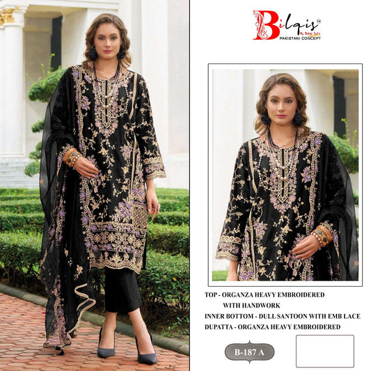 B 187Abcd बिलकिस ऑर्गेंजा पाकिस्तानी सलवार सूट थोक मूल्य