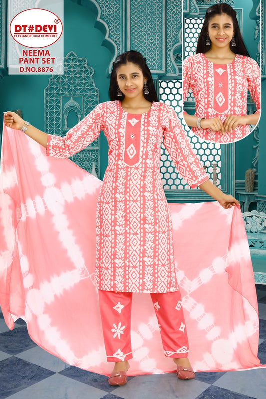 8877 नीना डीटी देवी कॉटन गर्ल्स रेडीमेड पैंट सूट थोक मूल्य
