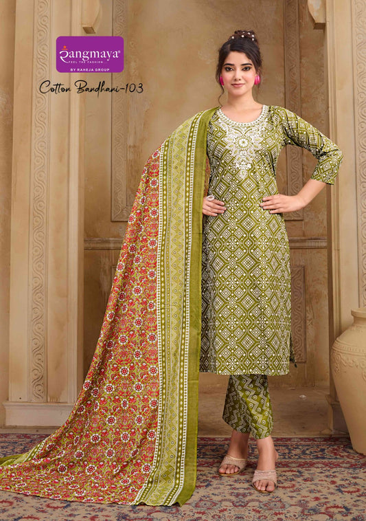 कॉटन बंधनी रंगमाया रेडीमेड पैंट स्टाइल सूट निर्यातक भारत