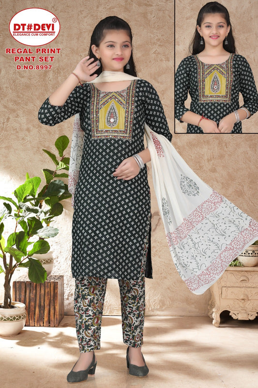 रीगल प्रिंट डीएन 8997 डीटी देवी कॉटन गर्ल्स रेडीमेड पैंट सूट थोक विक्रेता