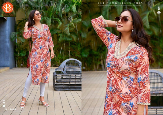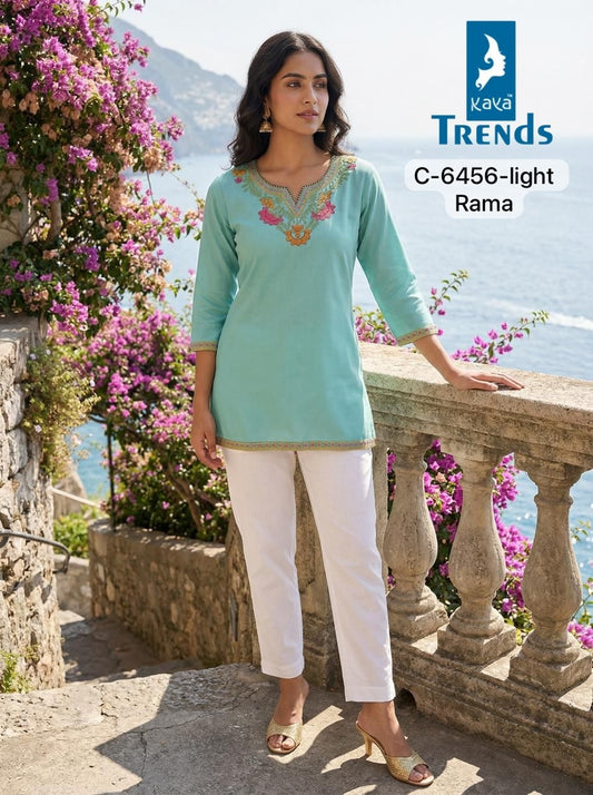 C 6456 Light Kaya Trends Rayon Short Kurtis Manufacturer Gujarat
