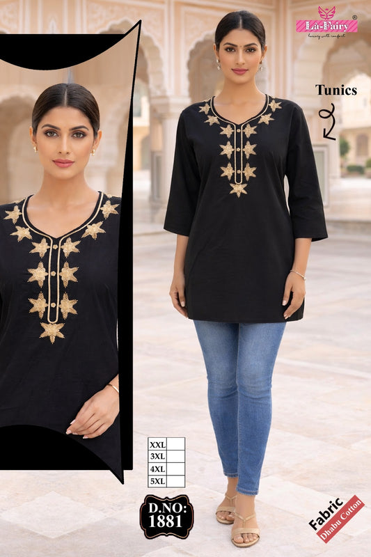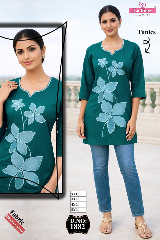 Design 1882 La Fairy Dhabu Cotton Short Kurtis Supplier India