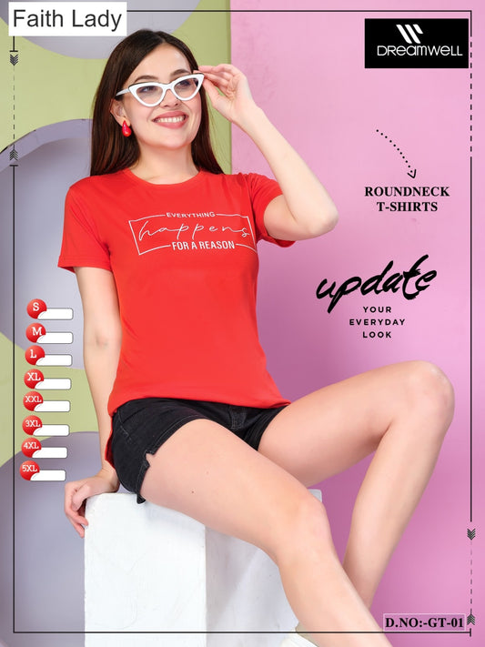 प्लेन 0209 फेथ लेडी कॉटन लाइक्रा महिला टीशर्ट सप्लायर भारत