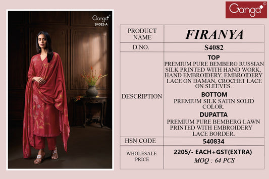 फ़िरन्या 4082 गंगा प्रीमियम बेम्बर्ग प्लाज़ो स्टाइल सूट थोक विक्रेता
