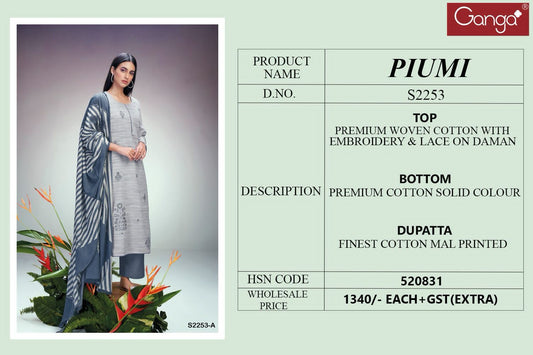 पियमी 2253 गंगा कॉटन प्लाज़ो स्टाइल सूट