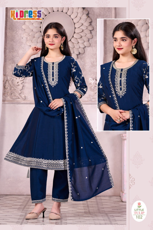 Little Tulip Kidress Aanchi Vichitra Silk Girls Readymade Pant Suits Wholesaler Ahmedabad