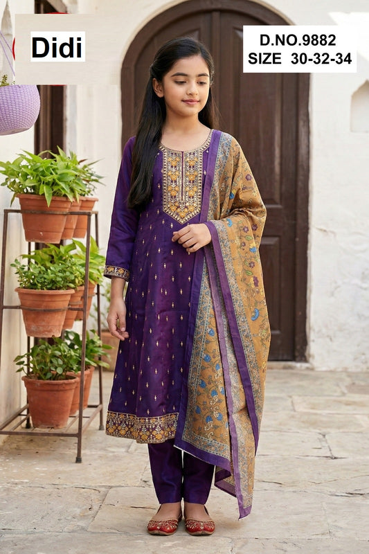 Lamikaa Dn 9940 Didi Gaji Silk Girls Readymade Pant Suits Wholesale Price