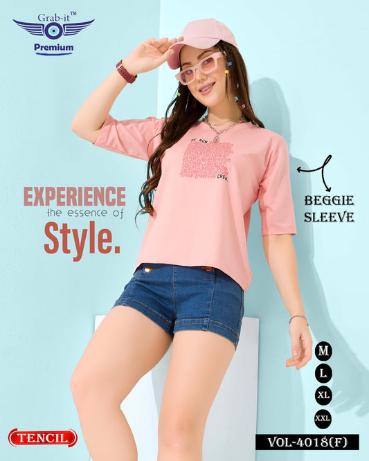 बेगी स्लीव्स वॉल्यूम 4018 एफ ग्रैब इट टेंसिल महिला टीशर्ट निर्यातक