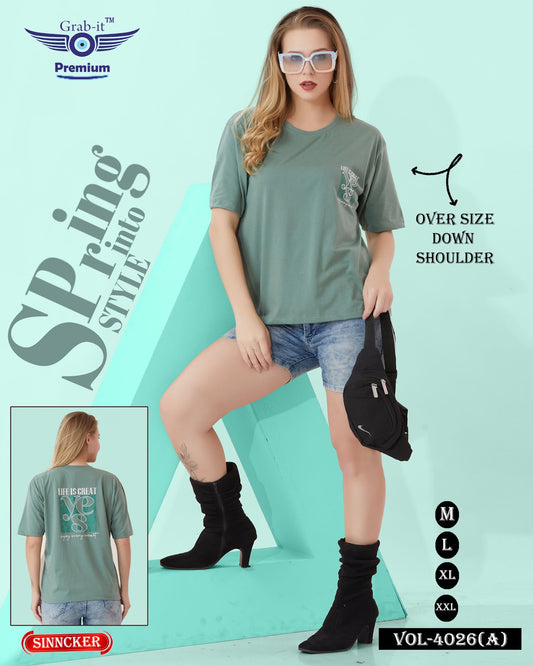 डाउन शोल्डर वॉल्यूम 4026 ए ग्रैब इट सिंकर महिलाओं के लिए ओवरसाइज़्ड टीशर्ट थोक विक्रेता गुजरात