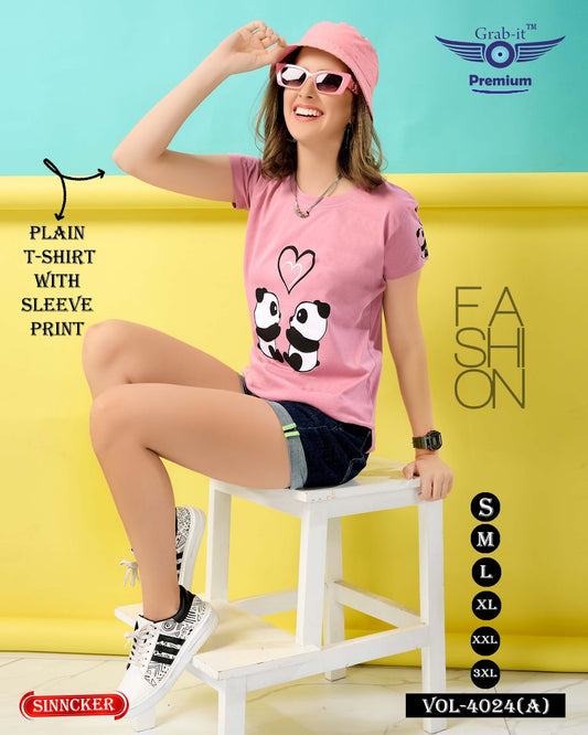 प्रिंट वॉल्यूम 4027 ए ग्रैब इट कॉटन लाइक्रा महिला टीशर्ट थोक मूल्य