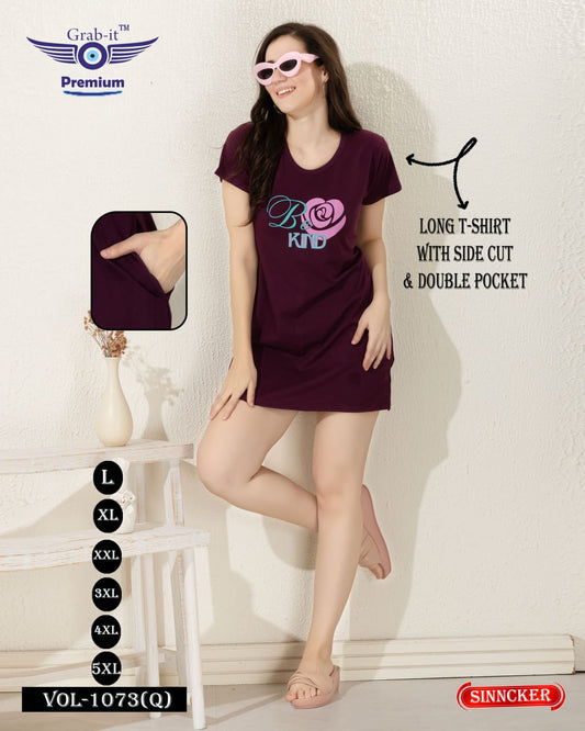 साइड कट 1073 क्यू ग्रैब इट सिंकर महिलाओं की लंबी टीशर्ट निर्माता भारत