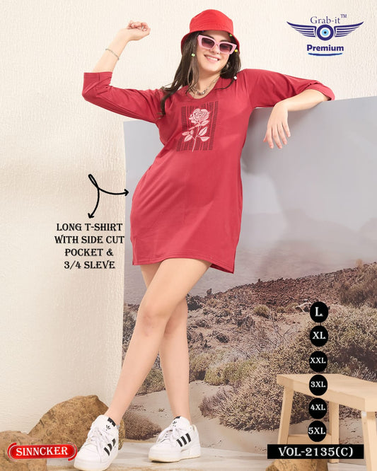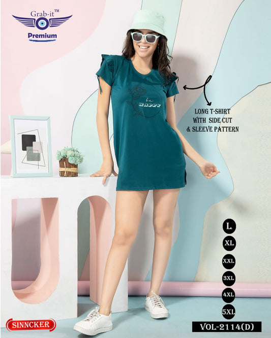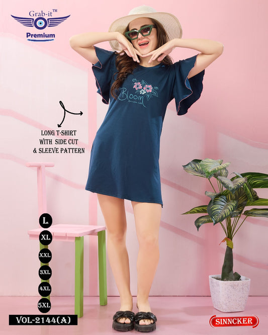 कुर्ता स्टाइल वॉल्यूम 2145 ए ग्रैब इट सिंकर महिला लॉन्ग टीशर्ट निर्यातक