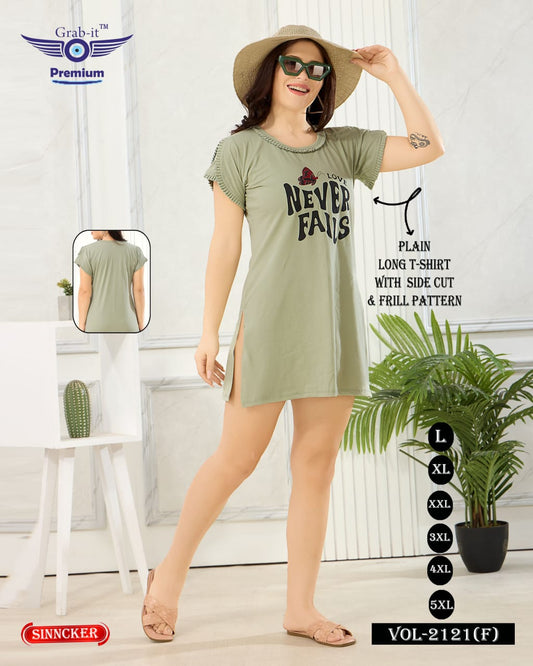 साइड कट वॉल्यूम 2121 एफ ग्रैब इट सिंकर महिला लॉन्ग टीशर्ट निर्माता गुजरात