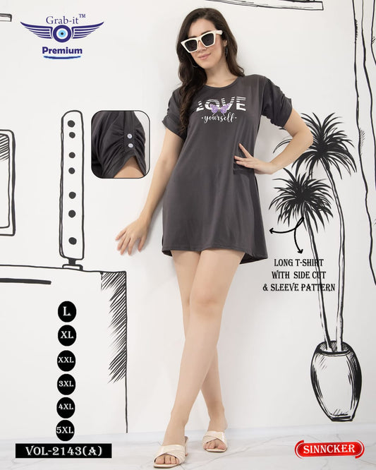 साइड कट वॉल्यूम 2143 ए ग्रैब इट सिंकर महिला लॉन्ग टीशर्ट सप्लायर अहमदाबाद