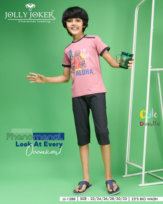 1288 जॉली जोकर कॉटन बायोवाश्ड लड़कों का कैप्री नाइट सूट