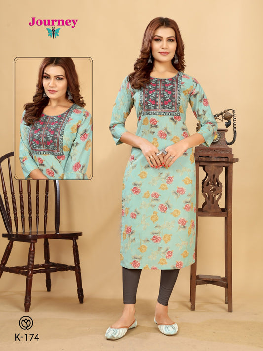 K 174-177 जर्नी डिज़ाइन लॉन्ग स्ट्रेट कुर्ती