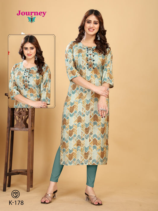 K 158-161 जर्नी डिज़ाइन विस्कोस लॉन्ग स्ट्रेट कुर्ती