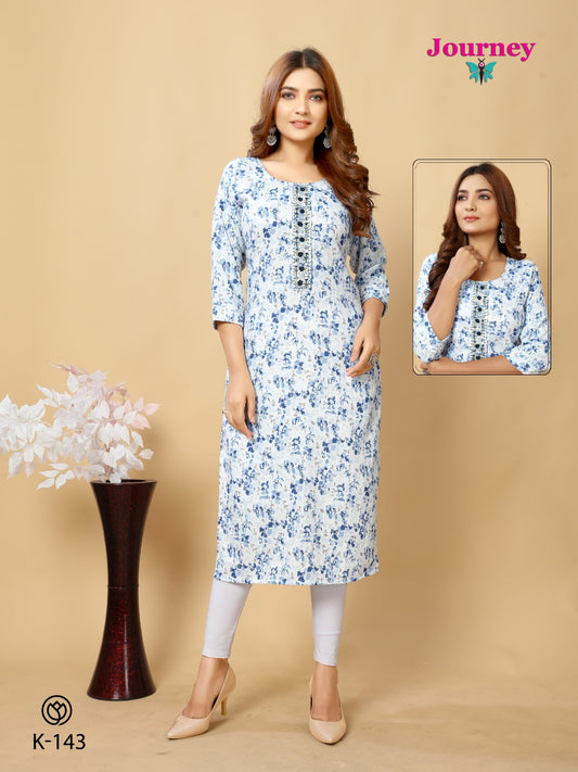 K 140-143 जर्नी डिज़ाइन विस्कोस लॉन्ग स्ट्रेट कुर्ती