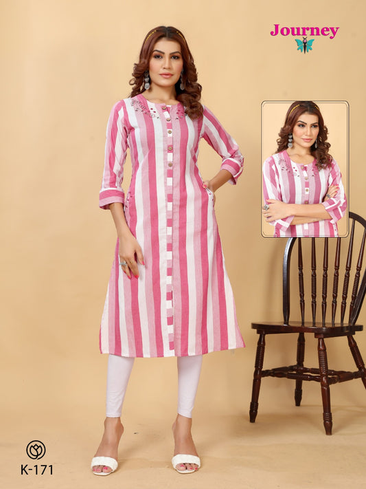 K 170-173 जर्नी डिज़ाइन कॉटन लॉन्ग स्ट्रेट कुर्ती