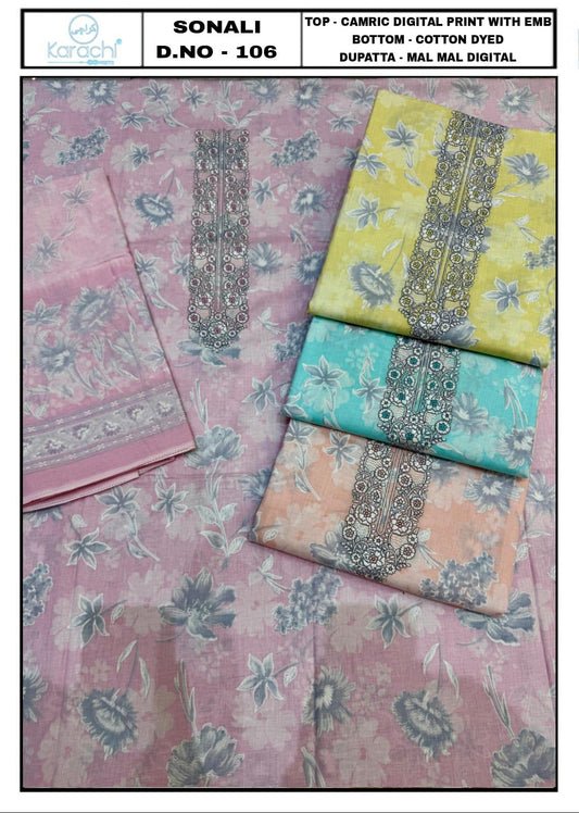 सोनाली कराची प्रिंट्स कैम्ब्रिक सलवार सूट थोक