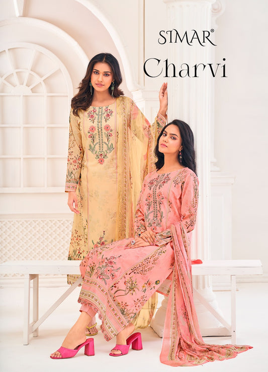 चारवी सिमर प्योर लॉन कराची सलवार सूट निर्यातक