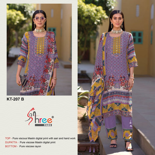 Kt 207 श्री फैब्स विस्कोस मसलिन कराची सलवार सूट निर्माता