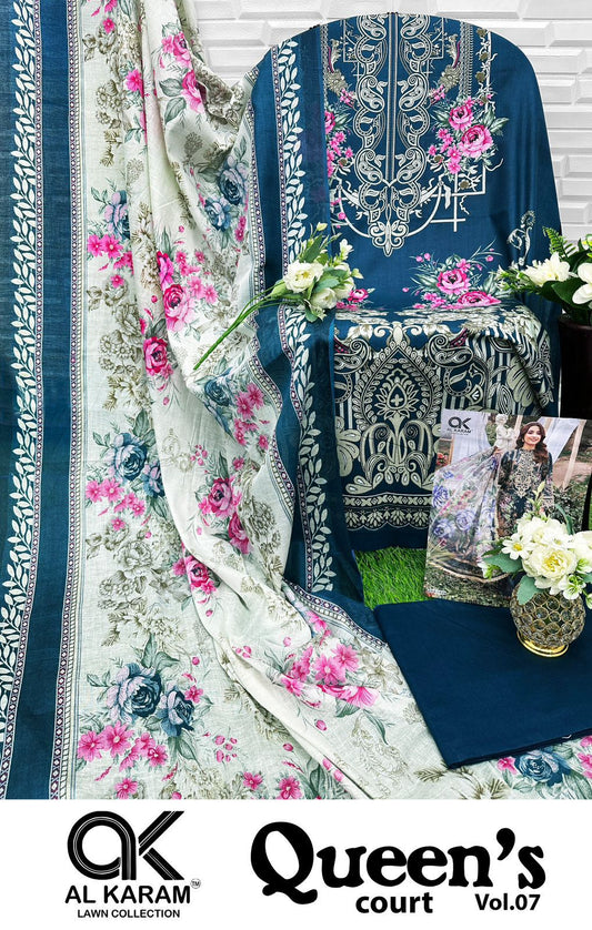 क्वींस कोर्ट वॉल्यूम 7 अल करम कैम्ब्रिक कराची सलवार सूट निर्माता गुजरात