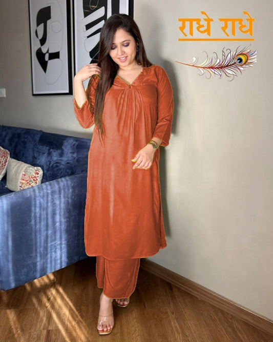 कावेरी कैडली हेवी रेयॉन कुर्ती प्लाज़ो सेट