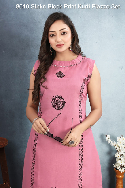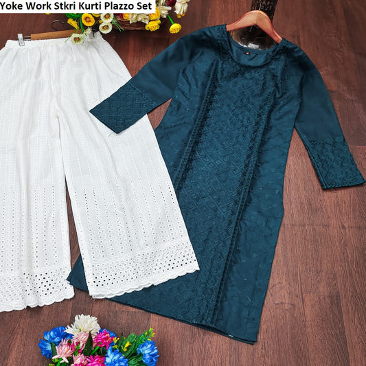 योक वर्क स्ट्रीक स्लब कॉटन कुर्ती प्लाज़ो सेट सप्लायर अहमदाबाद